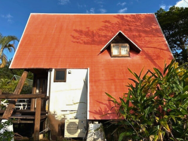 Sea Breezeの目印でもある、オレンジ色の三角屋根。年月とともに汚れが目立つようになっていたため、このたび専門業者さんにお願いし、屋根の洗浄をおこないました。